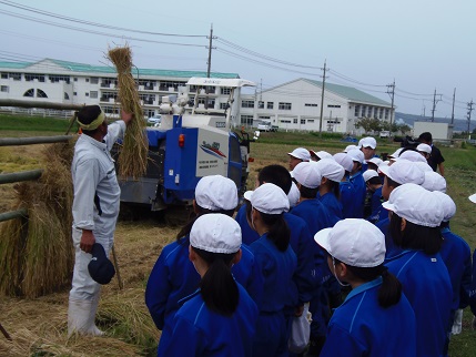 9月20日(木),雨模様でしたが,5年生が,5月に田植えした田んぼで,稲刈り体験をしました。