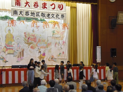 9月30日(日)に行われた「南大呑まつり」に有磯地区の子が,七尾市無形文化財に指定されている「ぼんぼらがい」という踊りを披露しました。有磯小学校は,閉校していますが,地域の伝統を引き継いでいくのは大切ではないでしょうか。地域の方々も,地域の子どもたちも元気な姿を見て,喜んでいました。