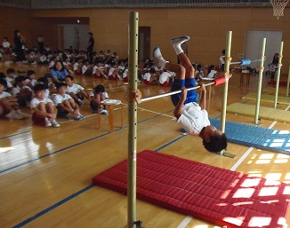 3年生が10月7日(水)山王小学校に行き,今まで練習してきた鉄棒,マット