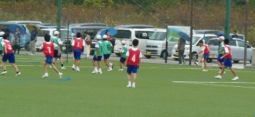 10月10日(水),七尾市内10校の小学校5年生が,和倉温泉多目的グラウンドで,サッカー交歓会に参加しました。