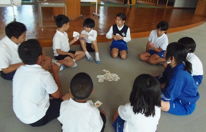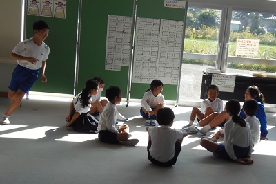 10月17日(水),後期縦割り班で,メンバーの絆を深めるためと,11月2日の「全校たてわり元気遠足」のめあてを確認するために,絆タイムを持ちました。