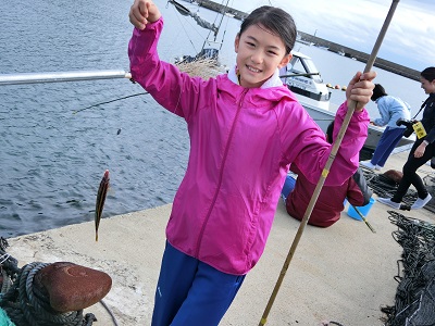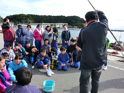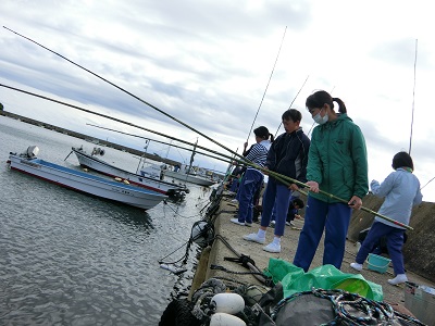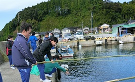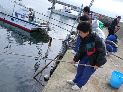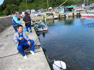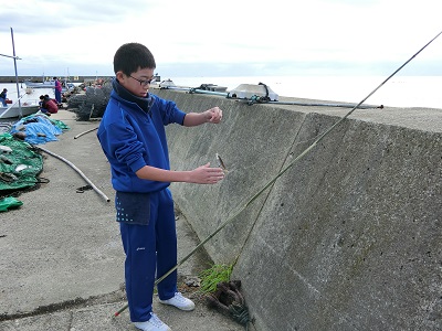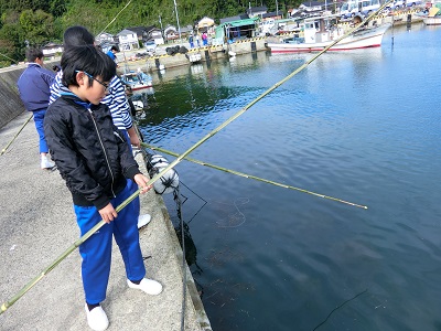 10月20日(土),土曜授業で6年生が,地元の鵜浦漁港で,旧北星小学校時代から続いている「つり体験」をしました。