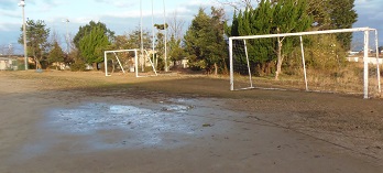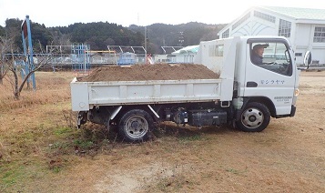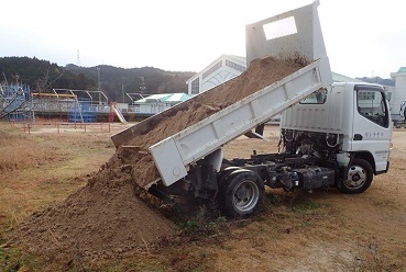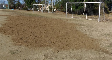 有限会社シラヤマさんから,砂をいただきました。その砂をサッカーゴールの前の水たまりにまきました。これからは,水たまりを気にせずに、休み時間に思い切りサッカーができます。「シラヤマ」さん,ありがとうございました。