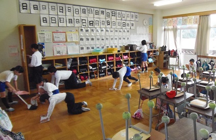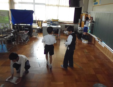 12月から,全校縦割り班で掃除をしています。もくもく掃除といって,無駄口することなく黙って「もくもく」と掃除をしています。学年毎に行っていた掃除より,6年生の班長を中心にまじめにする子が多いです。掃除をすることは,「心もみがく」ことだと言っております。当初は,12月だけの予定でしたが,3学期も続ける予定です。