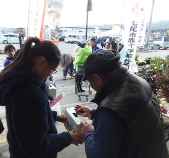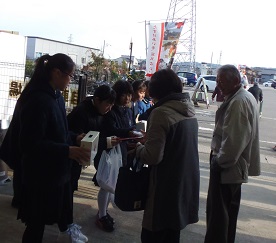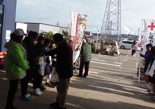 子どもたちは,七尾市赤十字奉仕団の皆さんと,募金を呼びかけました。寒い中でしたが,子どもたちも人の心のあたたかさを感じることができ,貴重な体験になったことでしょう。