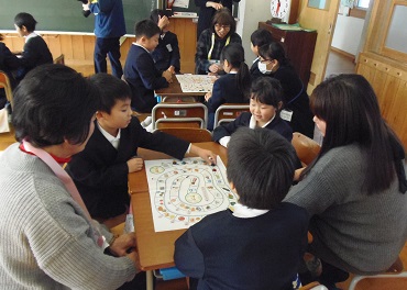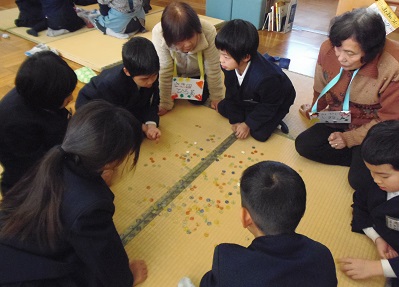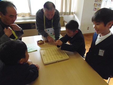 子どもたちがそれぞれのコーナーを回って,将棋・福笑い,あやとり・おはじき・お手玉,けん玉・めんこ・コマ,折り紙,すごろくをしました。笑顔あふれるすてきな会になりました。