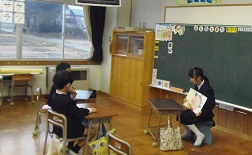 1月24日(木),金沢大・金沢星稜大の学生さんが来校しました。夏休みに約1週間,七尾市の大呑地区での体験型インターシップで得たものを,5年生に伝えてくれました。里山里海に恵まれた地域の良さなどを都会と比べたり,自分たちが体験して実感したことを話したりしてくれました。「写真を使った神経衰弱」なども取り入れ,グループでなごやかな雰囲気で楽しく行われました。