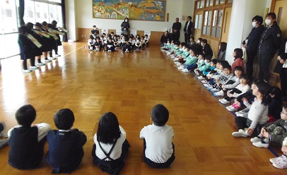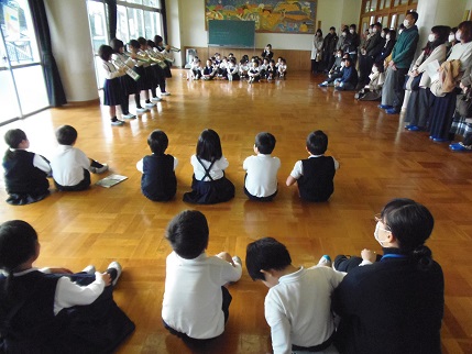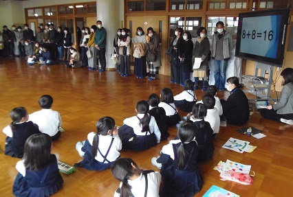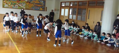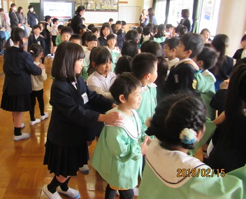 2月15日(金),来年度本校に入学する園児をお迎えして,1年生が交流しました。1年生は自分たちができるようになったことを発表したり,校内を案内したりしました。1年生はお世話等をすることで,ちょっぴりお兄さん・お姉さん気分になり,役立ち感を持つことができたのではないでしょうか。年長児は,入学が楽しみになったことでしょう。