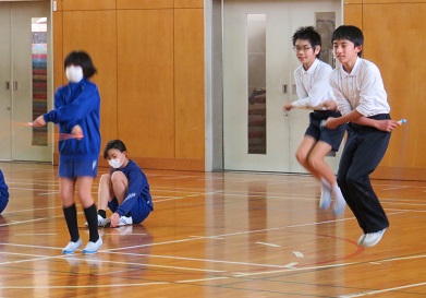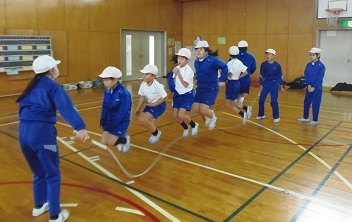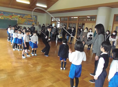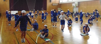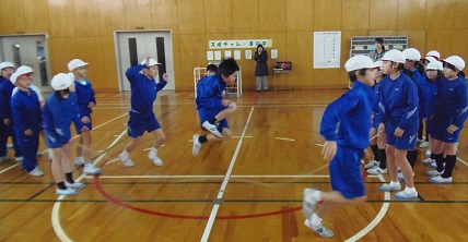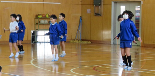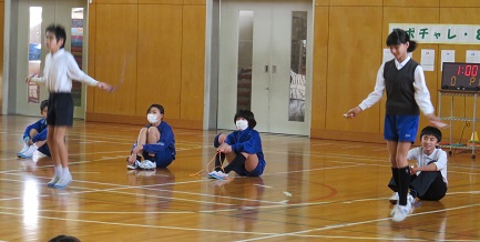 2月13日(水),校内なわとび大会を行いました。個人種目(1人3種目),団体種目(8の字跳び:学年,みんなでジャンプ:縦割り班)がありました。個人種目では,どの児童も数を数えてくれる人に「お願いします。ありがとうございました。」も言い,一生懸命跳びました。