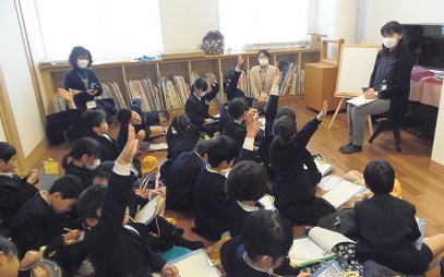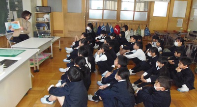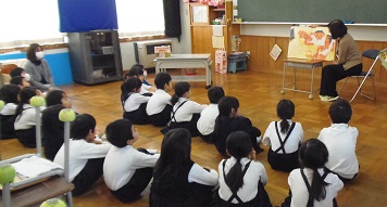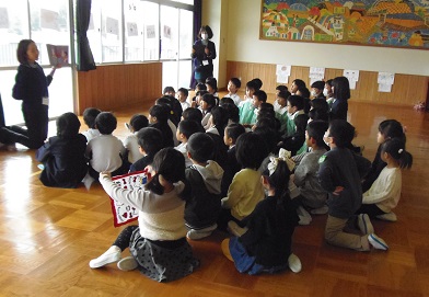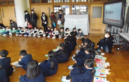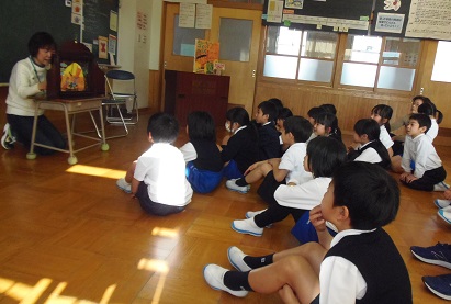 2月5日(火),石川県生涯学習インストラクターの会の2名の方が来校し,「お話し会」を開いて下さいました。1年1組,1年2組,2年と3回して下さいました。絵本や紙芝居の読み聞かせ,手遊びなどで楽しいひとときを過ごすことができました。ありがとうございました。