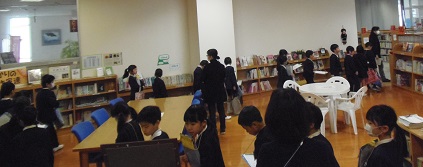 2月12日(火),2年生が,七尾市立図書館を見学してきました。図書館の係の人からお話を聞き,質問もしました。その後,図書館の中を案内していただき,一人一人が思い思いの本を借りました。
