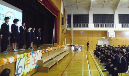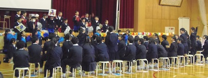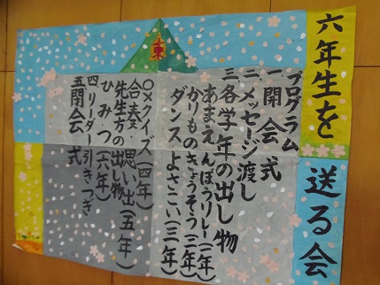 2月27日(水),「6年生を送る会」で5年生が中心になり準備や当日の進行をし,それぞれの学年でも工夫された出し物がありました。6年生に感謝の気持ちが十分に伝わったようです。