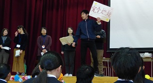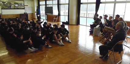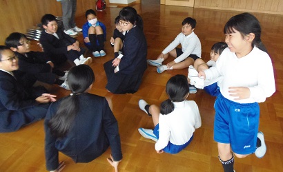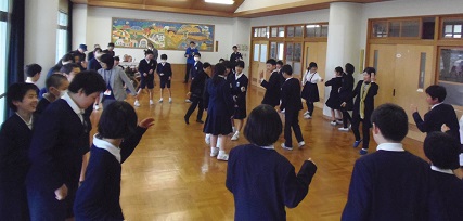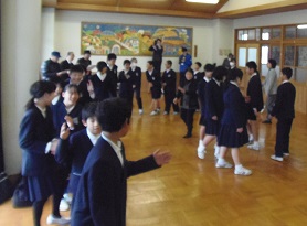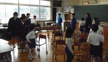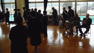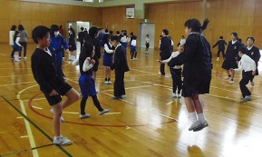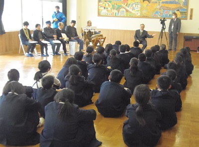 3月4日(月),5年生が有磯地区の山崎町に伝わる七尾市指定無形民俗文化財の盆踊り「ぼんぼらがい」を体験しました。まず,「目蓮尊者地獄めぐり」のお話を聞きました。その後,歌に合わせて盆踊りを踊りました。地域の伝統文化にふれ,地域のことを知るきっかけになりました。