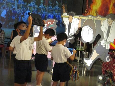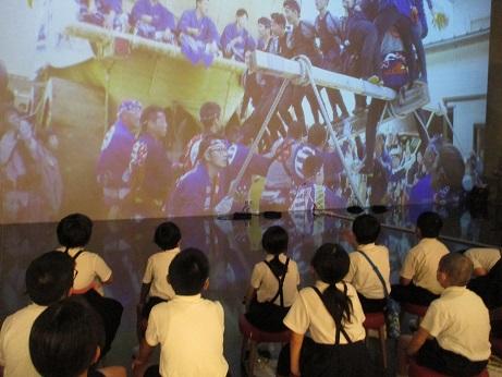 3年生が総合的な学習の時間にお祭り会館を見学しました。子どもたちは七尾市の主な祭りである青伯祭やお熊甲祭り、石崎の奉燈祭り、向田の火祭りについて説明を受けた後、でか山を引っ張る体験をさせてもらったり好きなところをカメラで撮影したりしました。