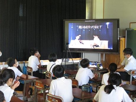2学期がスタートして最初の学活の時間に、睡眠についての学習集会を行いました。夏休みの間に乱れた生活リズムを整え、すっきりと2学期をスタートしてもらうためです。保健・給食委員会の子どもたち+有志が作ってくれた「すいみん列車の旅」の劇を鑑賞し、ぐっすり眠ることの大切さを学びました。劇は好評で、低学年からは「もう一回見たーい。」と言われていました。みなさん、ぐっすり眠って成長ホルモンをゲットしましょう!