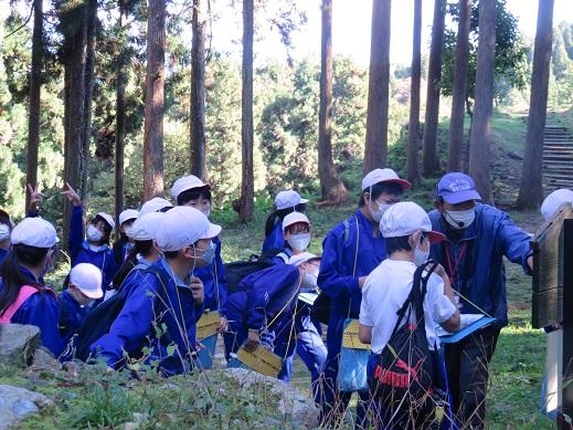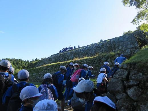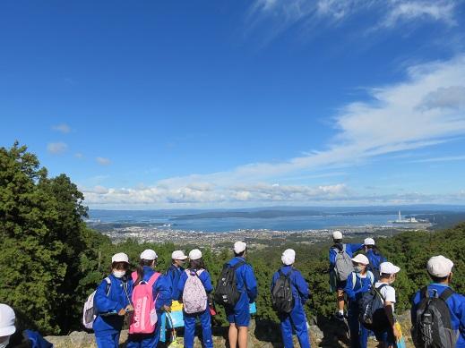 ガイドのお二人から七尾城の歴史について教えていただいた後、5年生が城山登山をしました。上からの眺めは最高で、登った疲れも吹き飛んでしまうほどでした。