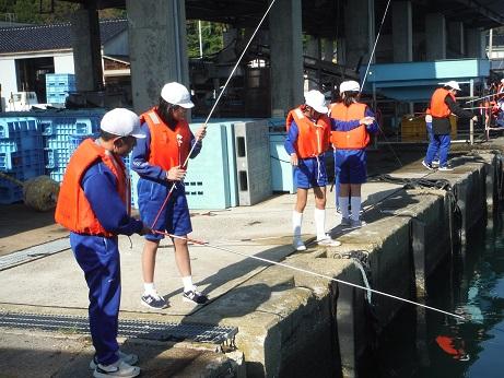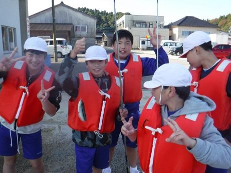 修学旅行生の誘致のための動画撮影部隊として、6年生が能登島でつりを体験しました。初めから慣れた手つきで魚を釣り上げる子もいましたが、初めての子は餌のオキアミをつけるのにも四苦八苦していました。しかし1時間ほどの間に慣れて多くの子が魚を釣ることができました。「釣りにはまった!」という歓喜の声を上げる子までいました。