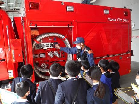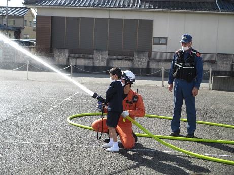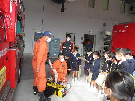 社会科の学習で3年生が消防署の見学に行きました。たくさんの種類の消防車を見ることから始まり、地震体験、通報体験、放水体験、防火服の着用など様々な体験をしてきました。その中で消防署で働く人の大変さなども理解できたようです。