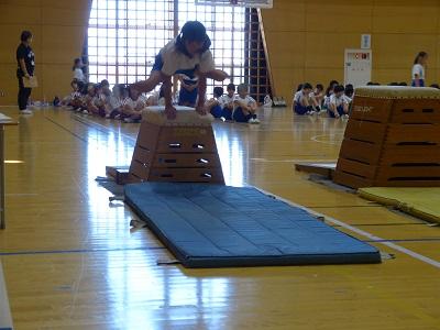 山王小学校の体育館に本校含めた5校の児童が集まって器械運動交歓会を行いました。種目は跳び箱、鉄棒、マットの3種目です。これまでの練習の成果を発揮するべく、子どもたちはきびきびと技を披露していました。