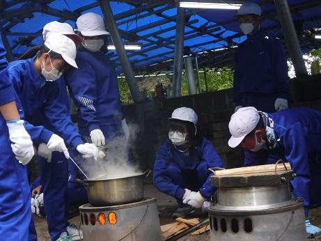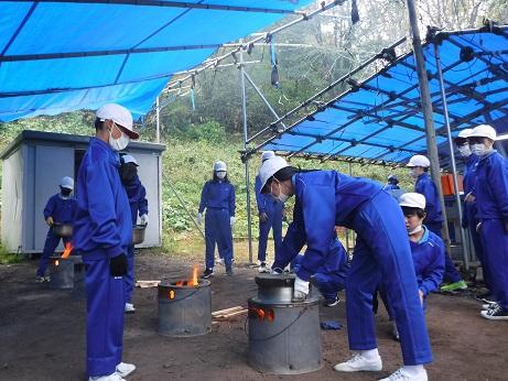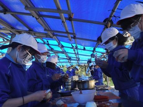 6年生 鹿島少年自然の家で野外炊飯(10月24日)