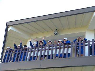 ボランティアガイド「はろうななお」の方に七尾城についての説明をしていただいた後、みんなで歩いて登ってみました。展望台からの眺めは最高で、食べたおやつも最高においしかったようです。
