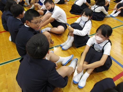 2学期の学び集会では、異学年の児童と向かい合って対話をしました。テーマは「好きなお菓子について」です。初めは恥ずかしがっていた子どもたちでしたが、慣れてくると楽しそうに好きなお菓子を紹介し合っていました。