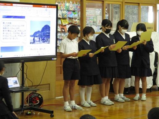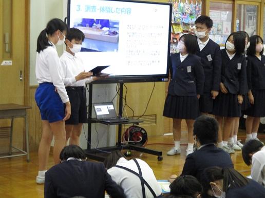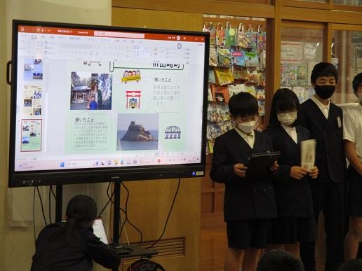 9日に調査して回ったことをまとめ、発表しました。自分たちが調べた地区だけでなく、他の地区のことも分かり、より自分たちの住んでいる地域について理解が深まりました。学生さんたちのフォローもあり、中身の濃い時間となりました。
