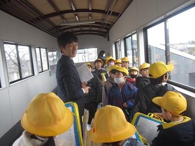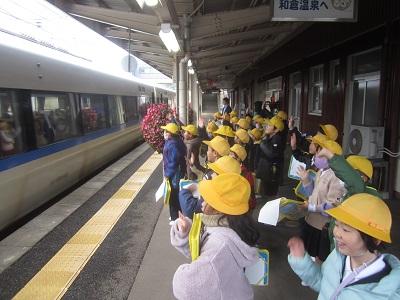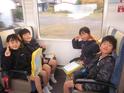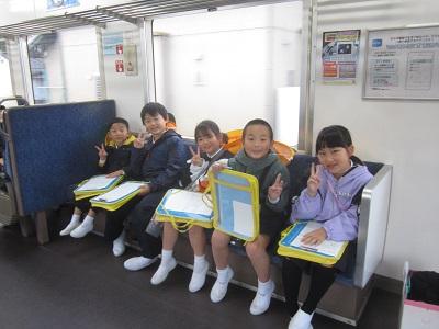 2年生が七尾駅から和倉温泉駅までを電車に乗って往復する体験をしました。普段なかなか電車に乗る機会がない子どもたちがほとんどで、短い旅を楽しんでいました。駅の構内では「秘密」を見つけたり、乗客の方にインタビューしたりと積極的に学習していました。