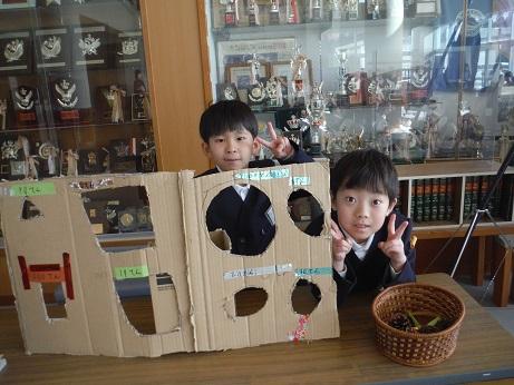 2年生が1年生を招待した「おもちゃ大会(11月)」と1年生が2年生を招待した「おもちゃ大会(12月)」では、1年生も2年生も大喜びで楽しんでいました。コーナーごとにお客さんを呼ぶ工夫も見られ、生活科の時間に試行錯誤しながら作った様子が伺えました。