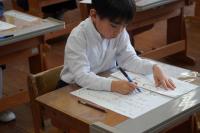 あけましておめでとうございます。久しぶりに登校したウォームアップ教室で、書き初めを行いました。冬休み中に練習してきた成果を出そうと、どの学年も集中して書いていました。子どもたちの真剣な表情と、書き終えて満足した表情が印象的でした。