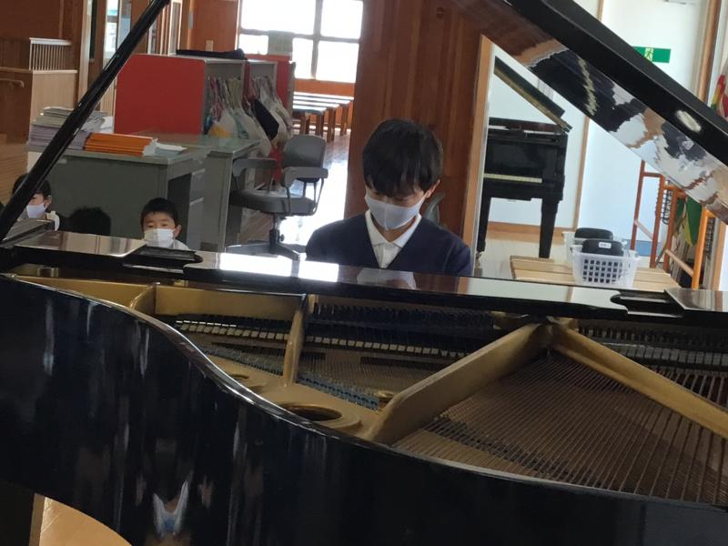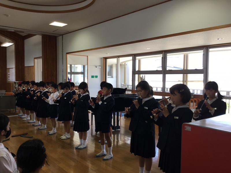 事前に出たいと申し出があった児童たちが、ピアノ伴奏やリコーダー合奏などしました。