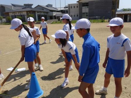 たてわり班でのびのび競争(5年体育)