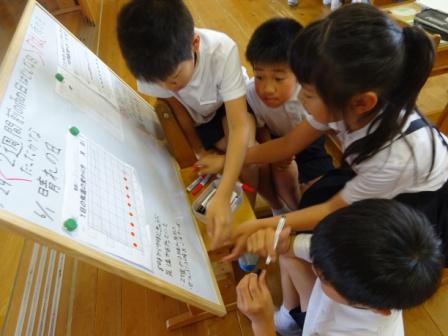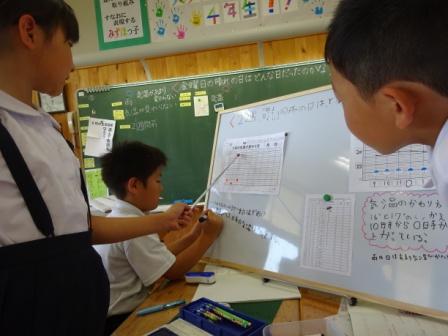 学んだばかりの算数「折れ線グラフ」の学習を活かせるとあって,