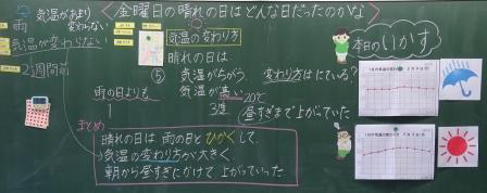 実体験と調べ学習で,雨の日の気温の変わり方をつかめたようですね。