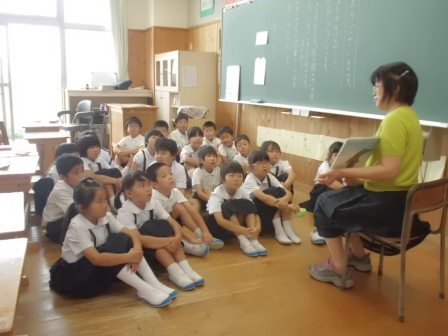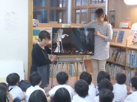 6月5日(金)の1回目は、西村さんと安達さんによる「花咲き山」の読み聞かせが行われ、1年生は大きな本と豊かな語りに引き込まれていました。ありがとうございました。