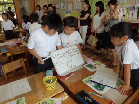 授業では、今年度の学校研究の重点である「学んだことを活かす場面を取り入れた展開」をすべての授業で取り入れ、子どもたちのより主体的・協働的な学びをねらいました。