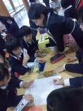 グループでは、役割分担し、①水洗い ②石けん洗い(10秒) ③石けん(30秒) と、洗い方の違いで手に残る汚れがどれだけ違うかを調べました。予想していた結果と違っていたグループもあり、
