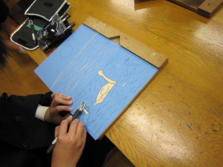5年生 版画作成中・・・