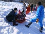 二人乗りの大きなそりにのって何度も坂を滑り下り、子ども達は歓声を上げてとても楽しそうでした。