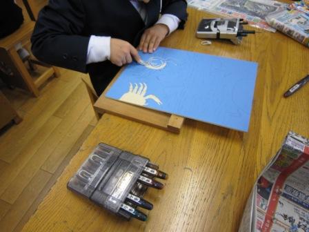 生き物の雰囲気が出るように,彫り方を工夫している子がたくさんいますよ。