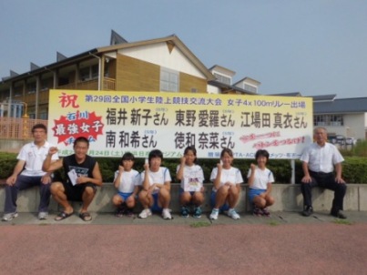 全国小学生陸上競技交流大会に参加する5名の瑞穂っ子ランナーズ。