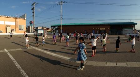 石野町は,大人数の地区ですが,定刻には整列して体操を始めていました。