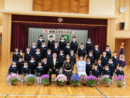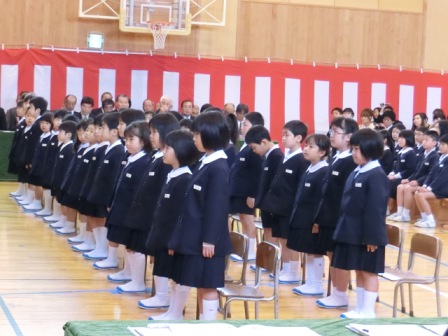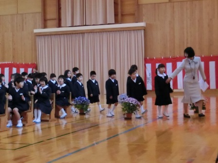 入学式では,元気いっぱいの新1年生33名が担任とともに入場し,