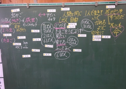 3年生は,5月初旬から,プランターのキャベツに産み付けられた