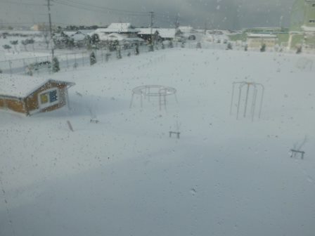 昼に近付くにつれて勢いを増し、見る見る雪が積もっていきました。