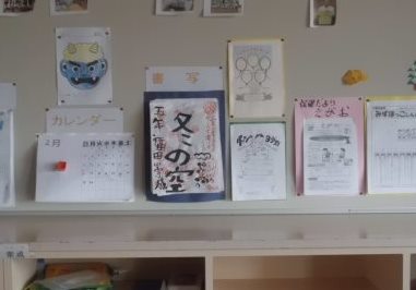 毛筆書写では、学んだことを活かす目的で学期毎に自由作品に挑戦しています。