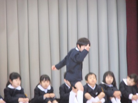 次に、全員で○×クイズとじゃんけん列車を行い、最後に円を作って今月の歌を歌いました。