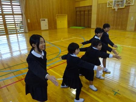 12月の全校集会の後,児童集会がありました。今回の児童集会は,縦割り班による「縦割り班対抗ジャンケン大会」でした。みずほっ子の児童はみんな,縦割り遊びが大好きです。今回の遊びは,縦割りの小グループで相手を見つけ,グー・チョキ・パーを体全体を使って表現します。そして,ジャンケンに勝ったときは,相手からカードをもらいます。