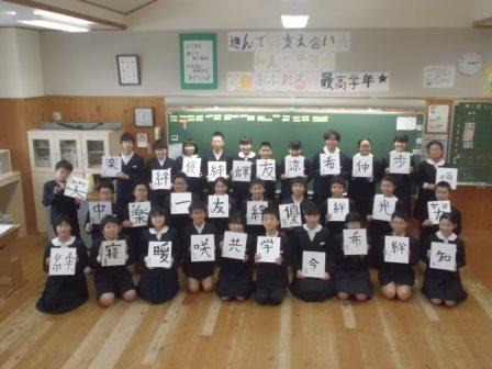 最後に、色紙を持って記念撮影を行い、最後の書写は終了しました。みんなの笑顔が輝いていました。6年生のみなさん、登校する日はいよいよ7日間です。巣立つその日まで、一日一日を悔いのないように過ごしていきましょう。「それが大事」ですね。