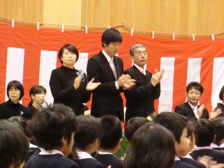 そして、恒例のがんばり賞の授与と歌のプレゼント。今回は「あきらめずに困難に立ち向かってほしい」との願いを込めて、巣立つ31名に「それが大事」(大事MANブラザーズバンド)をプレゼントしました。